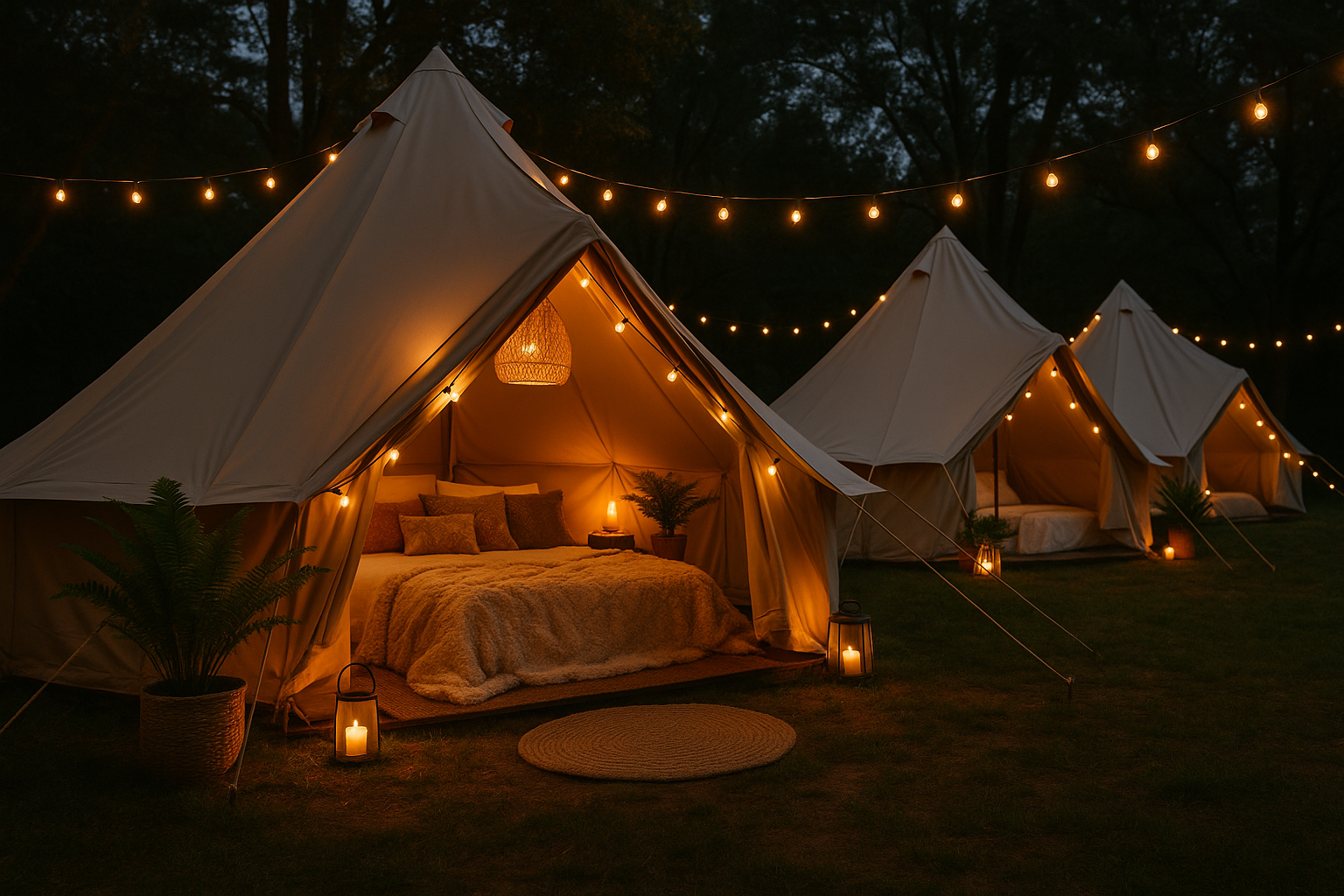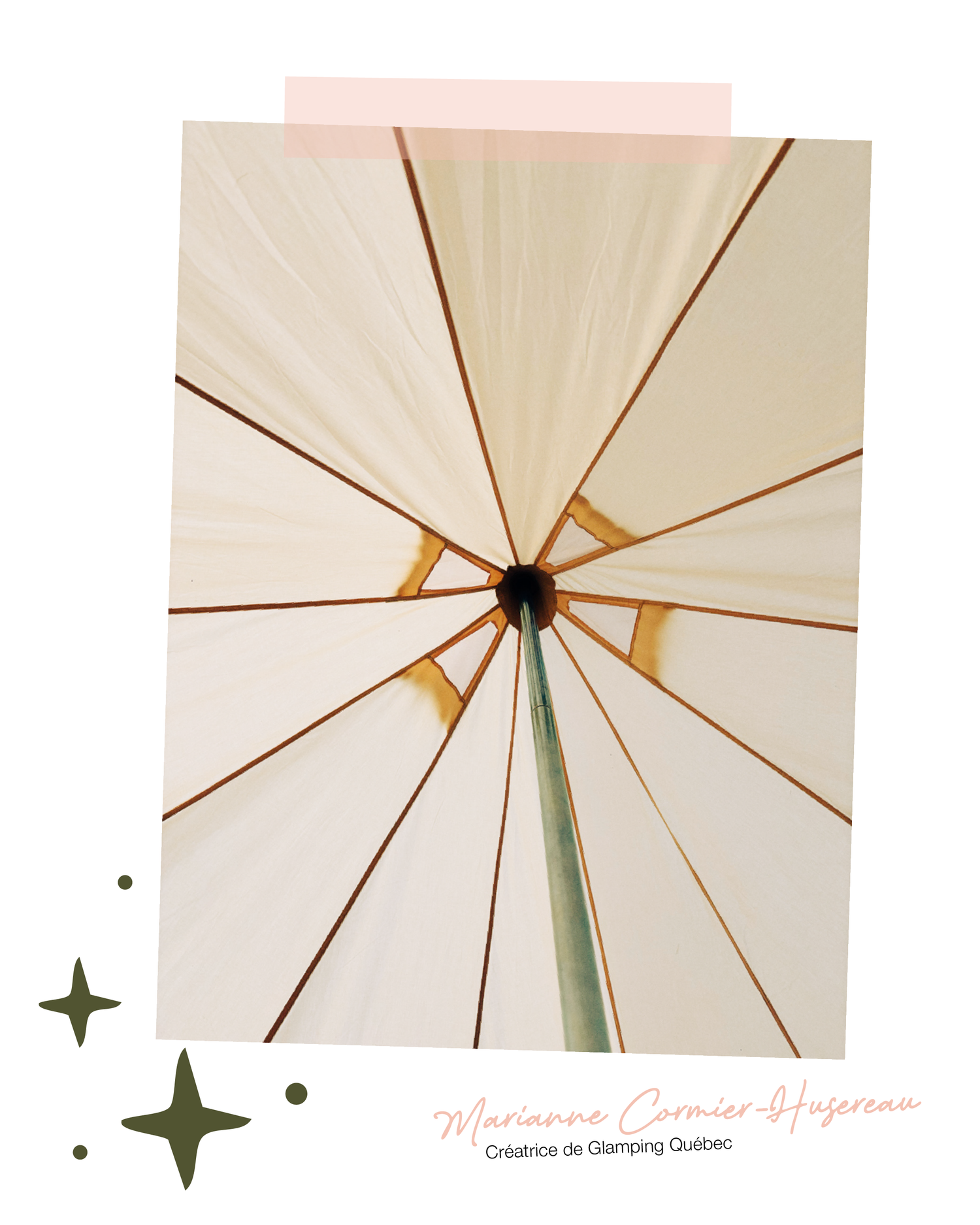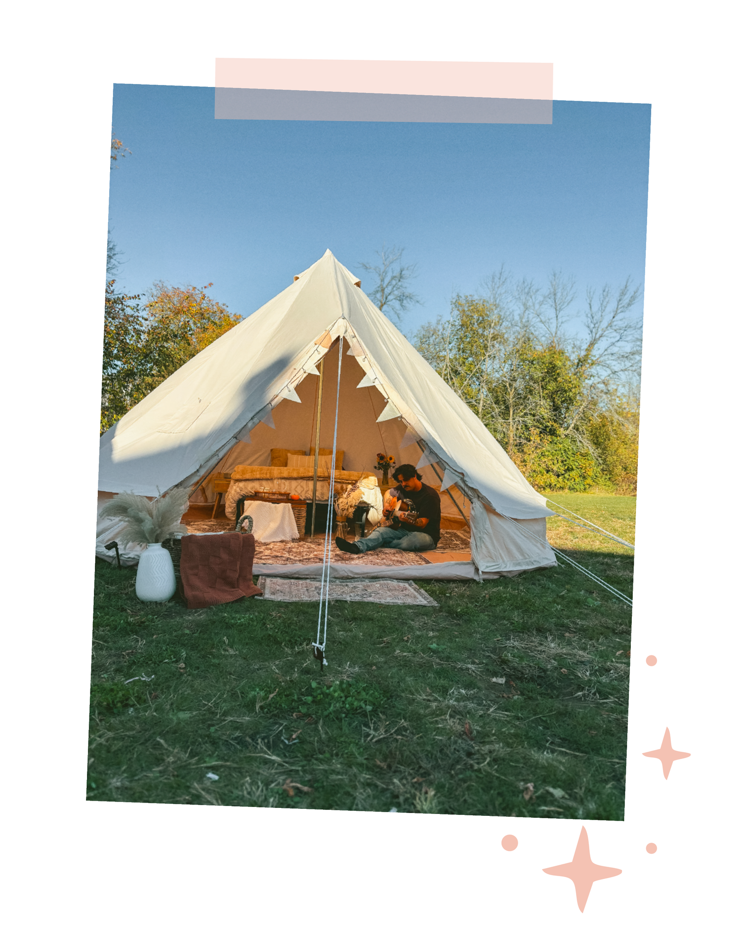 Entreprise familiale profondément ancrée dans ses racines québécoises, Expérience Glamping Québec incarne des valeurs de proximité, de confiance et d’authenticité. Chaque tente, pensée dans un esprit bohème-chic, est aménagée avec soin avec une décoration majoritairement de seconde-main pour offrir à la fois confort, élégance et convivialité.